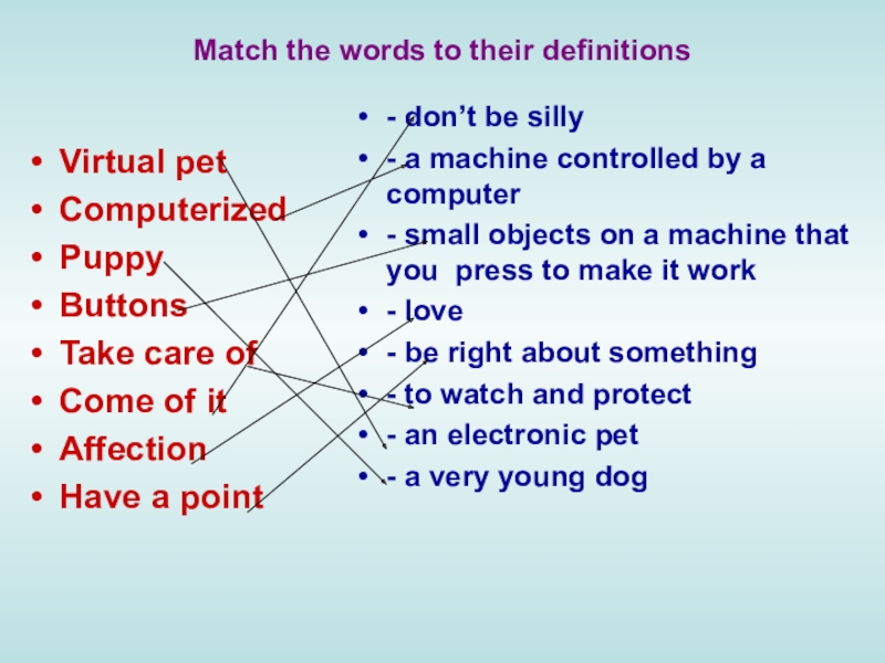 7. It is a virtual animal we play with. We can feed it, walk it, train it, clean after it. All we have to do is press buttons on the gadget.