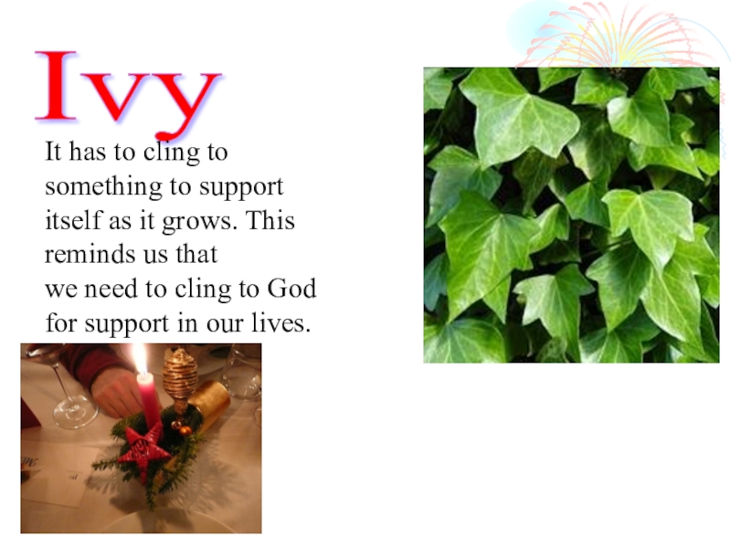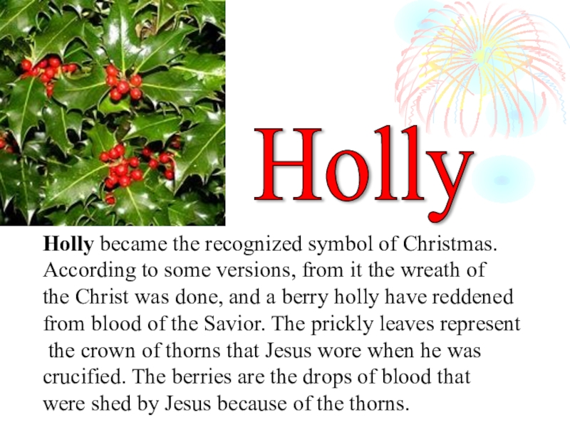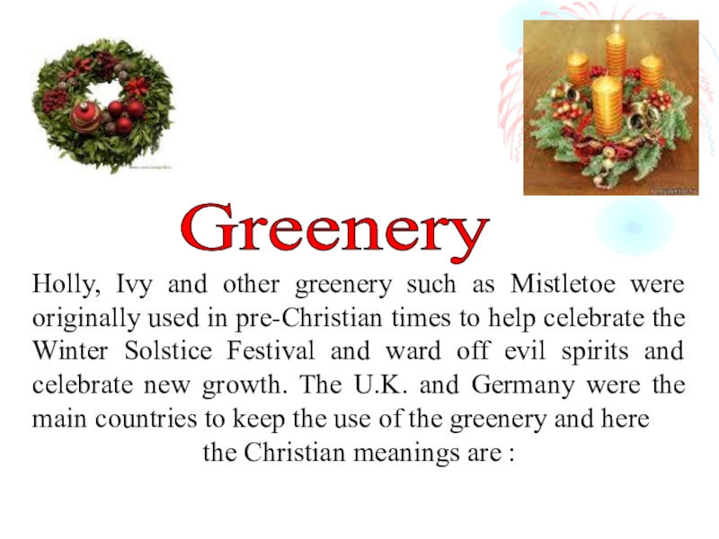 Слайд 10Holly, Ivy and other greenery such as Mistletoe were originally used