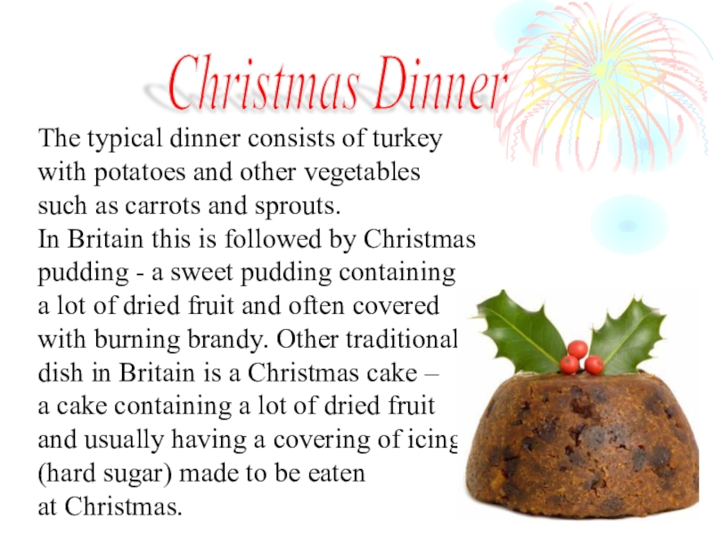 popular holiday in Great Britain. It is a family holiday. Traditionally all relatives and friends get together and give each other presents.
