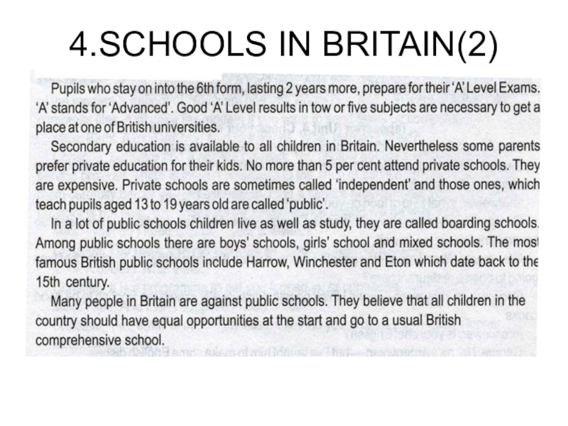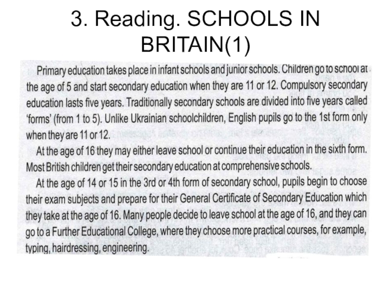 Слайд 63. Reading. SCHOOLS IN BRITAIN(1)