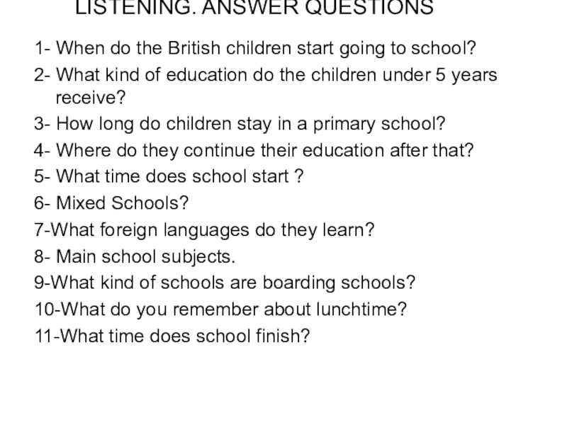 Слайд 11LISTENING. ANSWER QUESTIONS