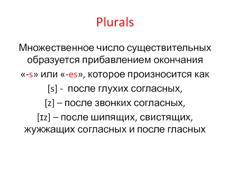 [ɪz] – после шипящих, свистящих, жужжащих согласных и после гласных