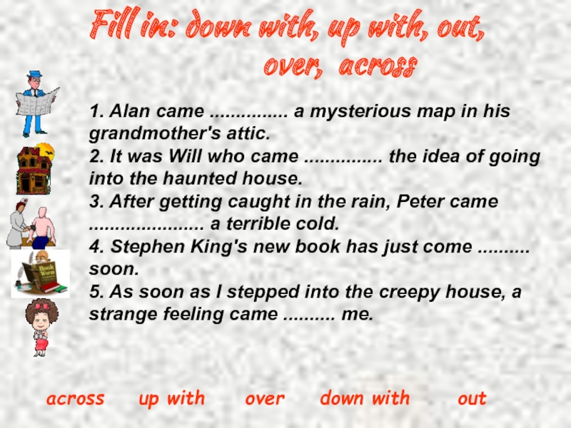 1. Alan came ............... a mysterious map in his grandmother's attic.