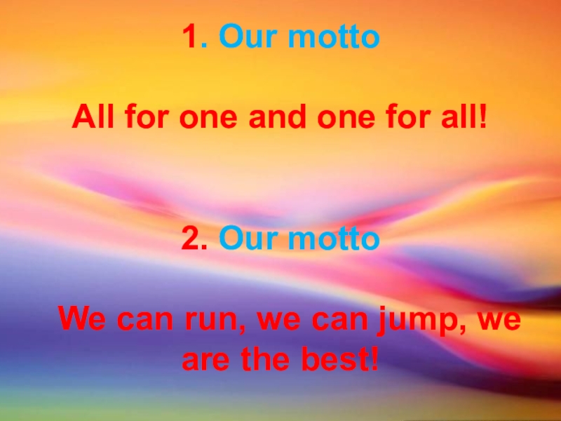 Слайд 121. Our motto All for one and one for all! 2. Our