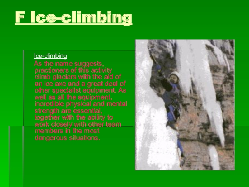 Слайд 8F Ice-climbing