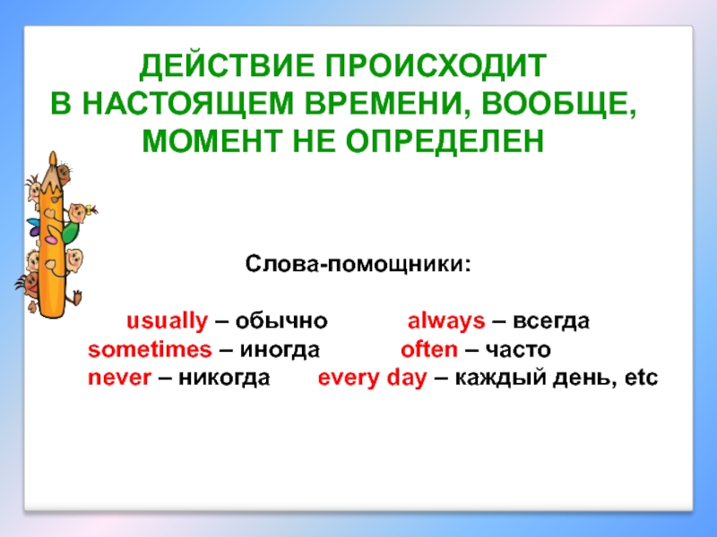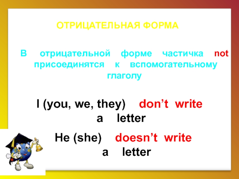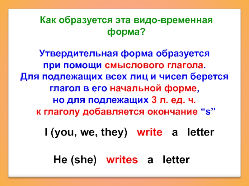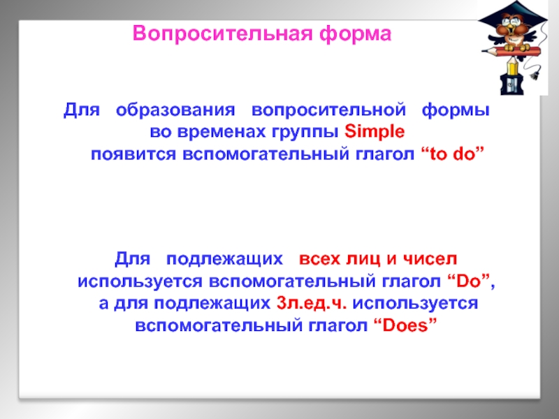 а для подлежащих 3л.ед.ч. используется вспомогательный глагол “Does”