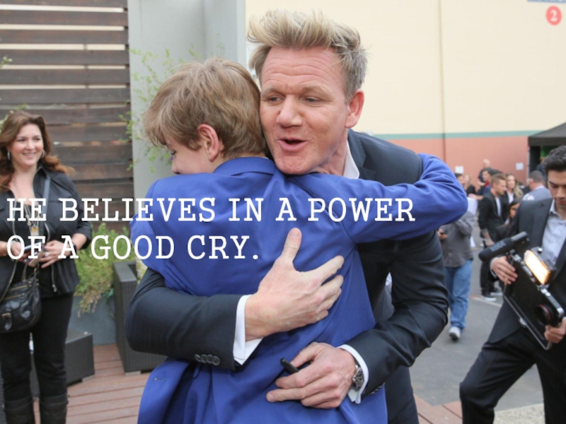 Слайд 5HE BELIEVES IN A POWER OF A GOOD CRY.