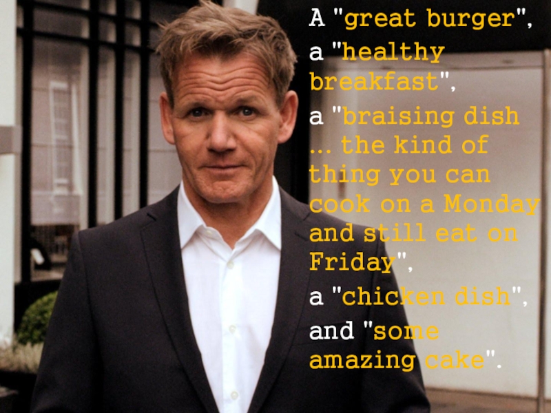 Слайд 3HE THINKS EVERYONE NEEDS TO KNOW HOW TO COOK FIVE DISHES: