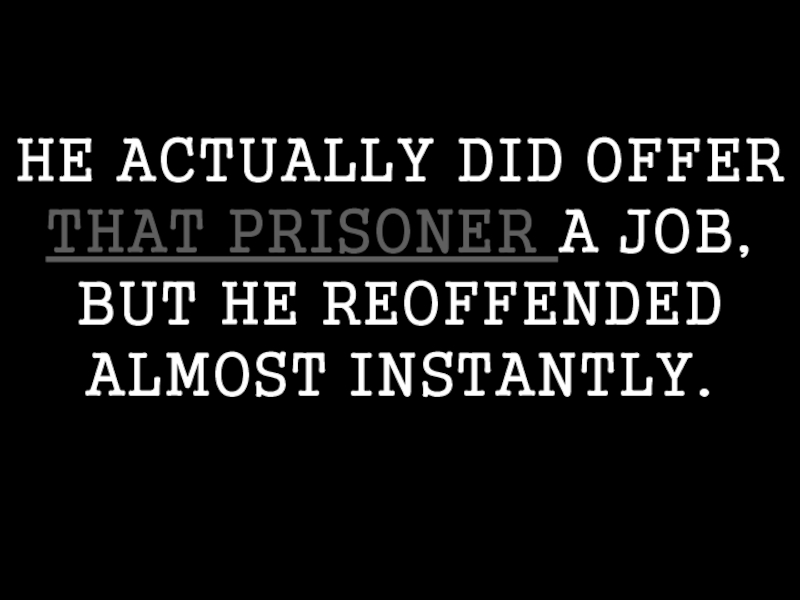 Слайд 7HE ACTUALLY DID OFFER THAT PRISONER A JOB, BUT HE REOFFENDED