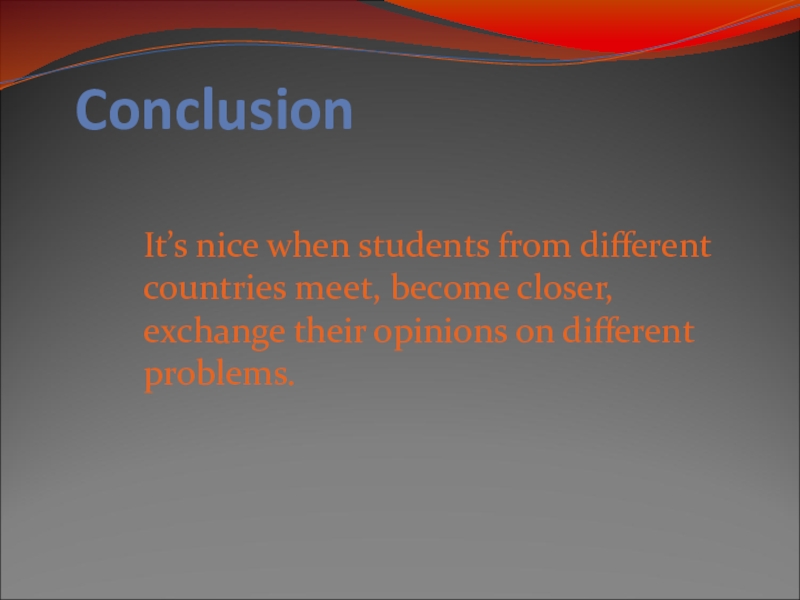 Conclusion It’s nice when students from different countries meet, become closer, exchange their opinions on different problems.