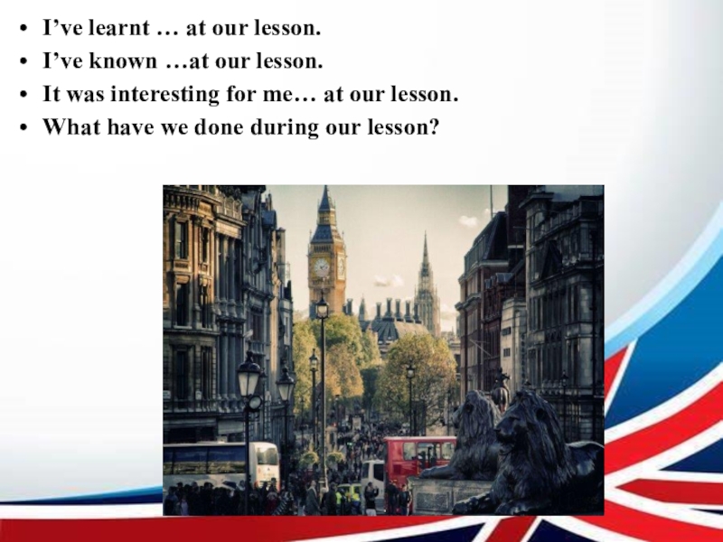 I’ve learnt … at our lesson.I’ve known …at our lesson.It was interesting for me… at our lesson.What