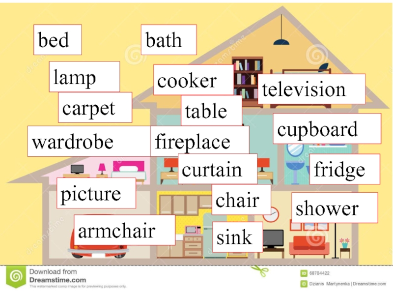 bedlampcarpetwardrobepicturearmchairsinkbathcookertablefireplacecurtaintelevisioncupboardfridgechairshower