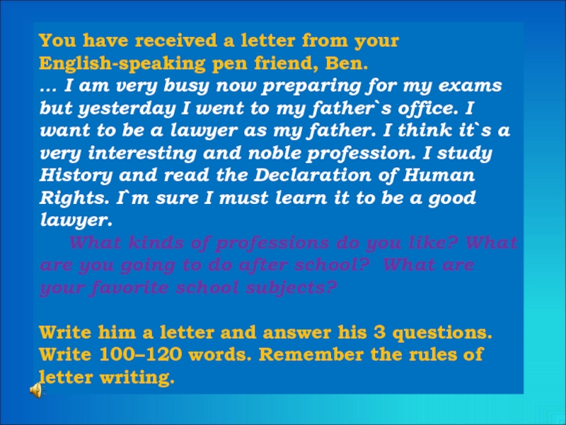 Слайд 31You have received a letter from your English-speaking pen friend, Ben.
