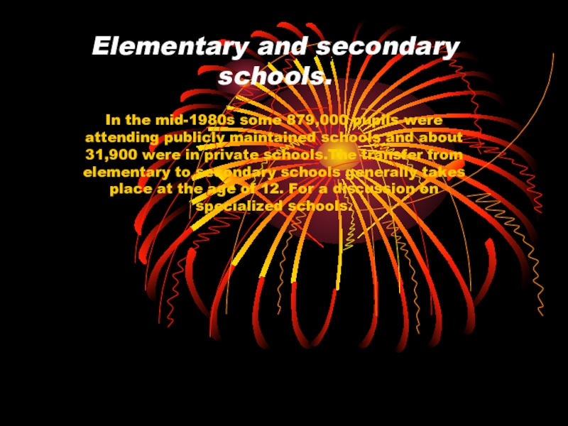 publicly maintained schools and about 31,900 were in private schools.The transfer from elementary to secondary schools generally takes place at the age of 12. For a discussion on specialized schools.