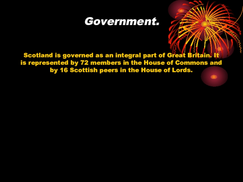 is represented by 72 members in the House of Commons and by 16 Scottish peers in the House of Lords.