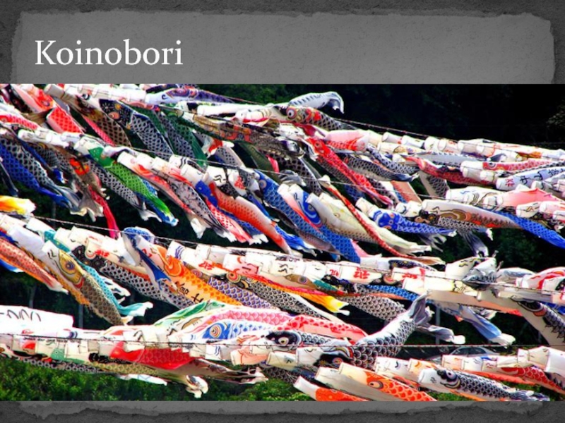 Koinobori Koinobori are carp-shaped wind socks that are used to celebrate Children's Day in Japan.The energetic movement of Koinobori in