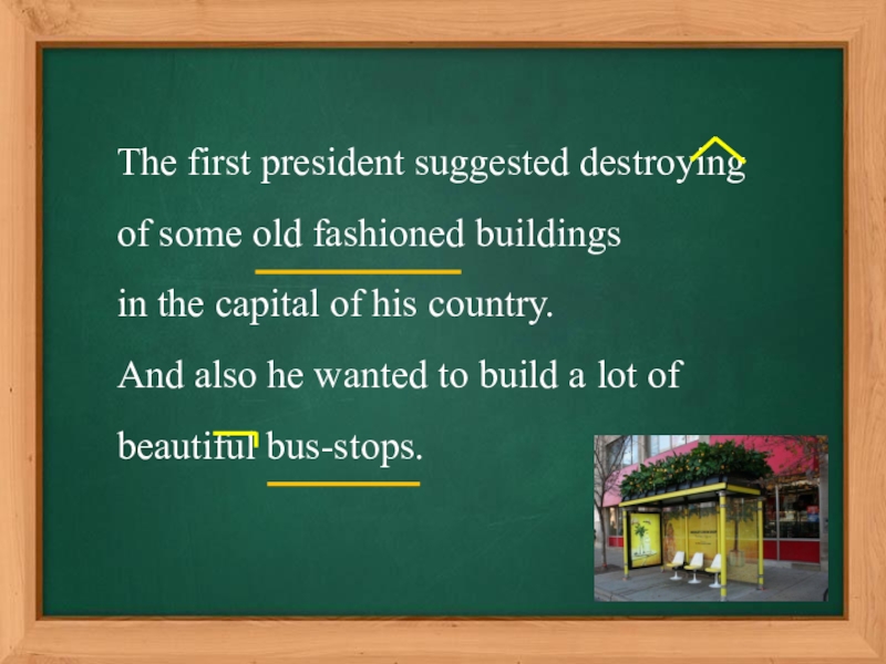 The first president suggested destroying of some old fashioned buildings in the capital of his country. And