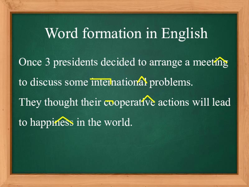 Word formation in EnglishOnce 3 presidents decided to arrange a meeting to discuss some international problems. They thought their cooperative actions will lead to happiness in the world.
