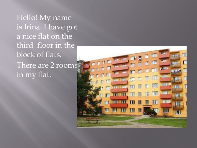Слайд 3Hello! My name is Irina. I have got a nice flat