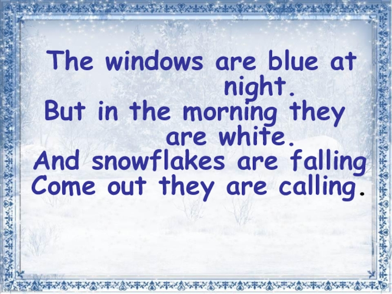 night. But in the morning they are white. And snowflakes are falling Come out they are calling.
