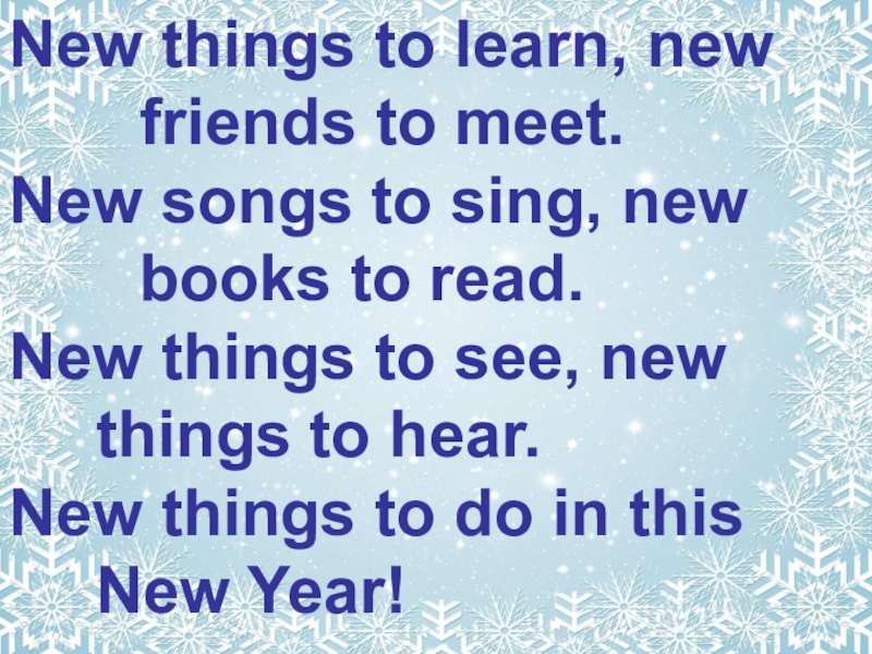 to sing, new books to read. New things to see, new things to hear. New things to do in this New Year!