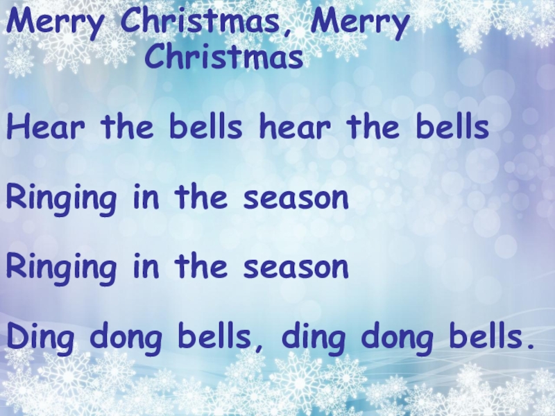 Merry Christmas, Merry   							Christmas Hear the bells hear the bells Ringing in the season Ringing