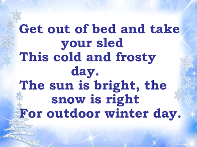 your sled This cold and frosty day. The sun is bright, the snow is right For outdoor winter day.