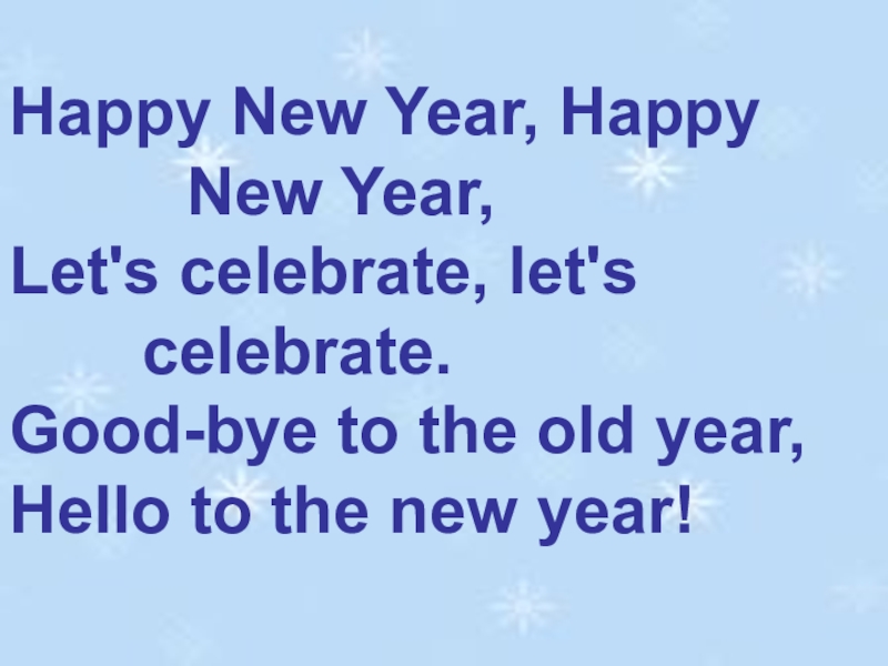 Слайд 6Happy New Year, Happy New Year, Let's celebrate, let's celebrate. Good-bye to
