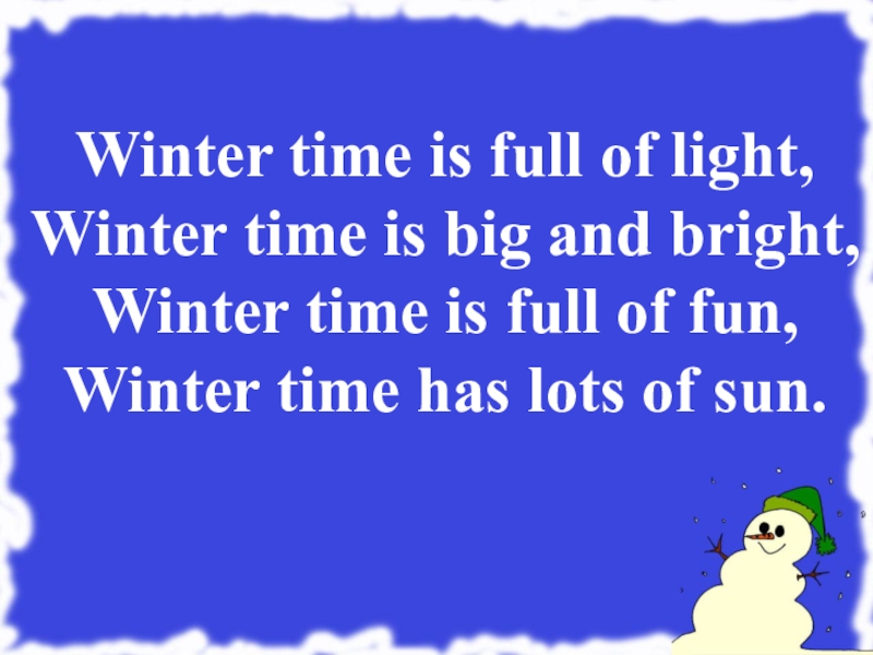 Winter time is full of light, Winter time is big and bright, Winter time is full of