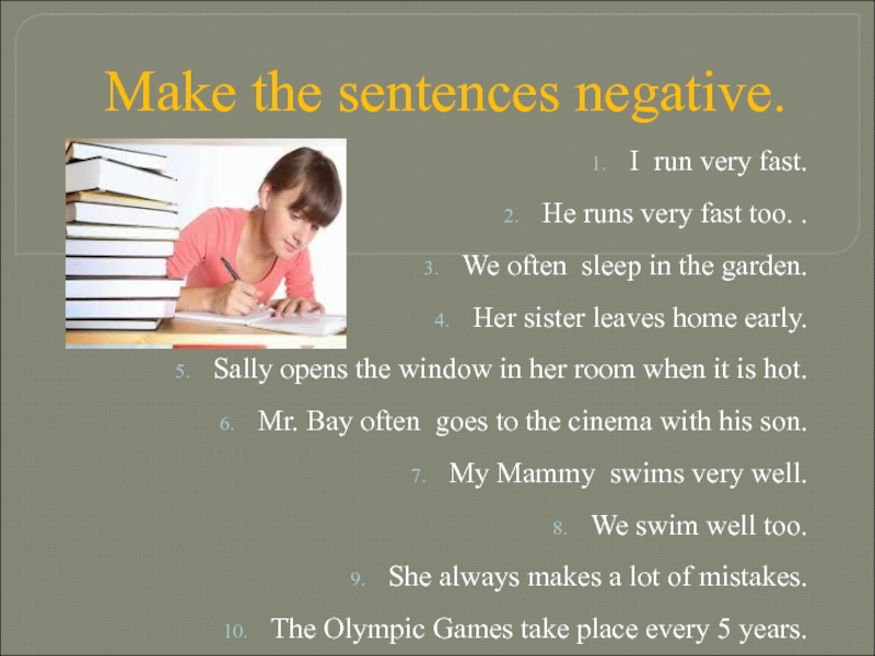 Make the sentences negative. I  run very fast.He runs very fast too. .We often  sleep in the