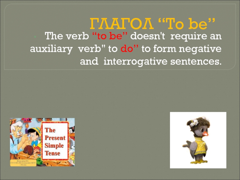 ГЛАГОЛ “To be”The verb “to be” doesn't require an auxiliary verb