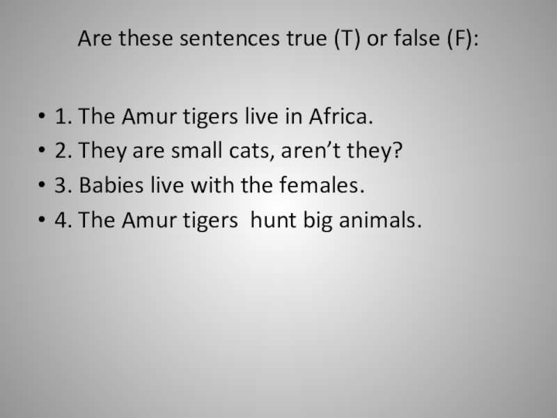Are these sentences true (T) or false (F): 1. The Amur tigers live in Africa.2. They are