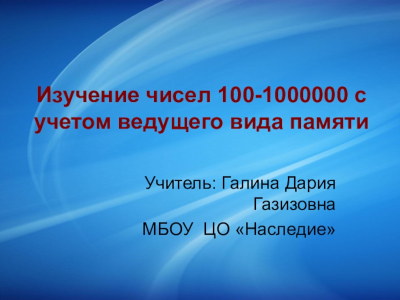 Слайд 1Изучение чисел 100-1000000 с учетом ведущего вида памяти