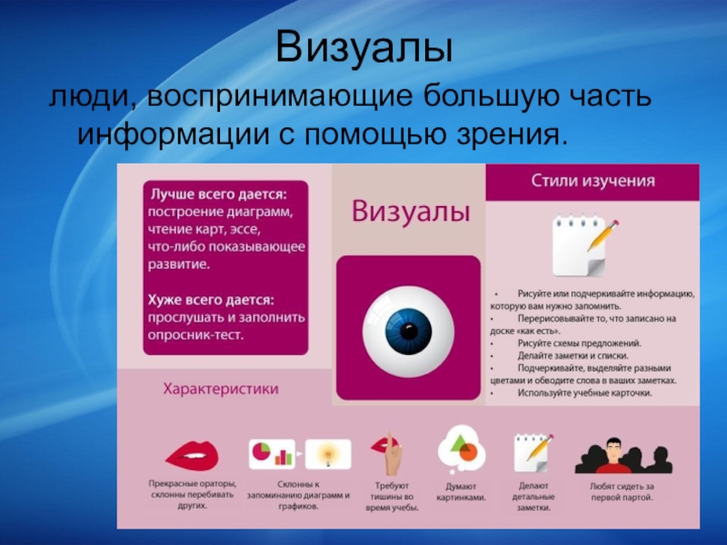люди, воспринимающие большую часть информации с помощью зрения.