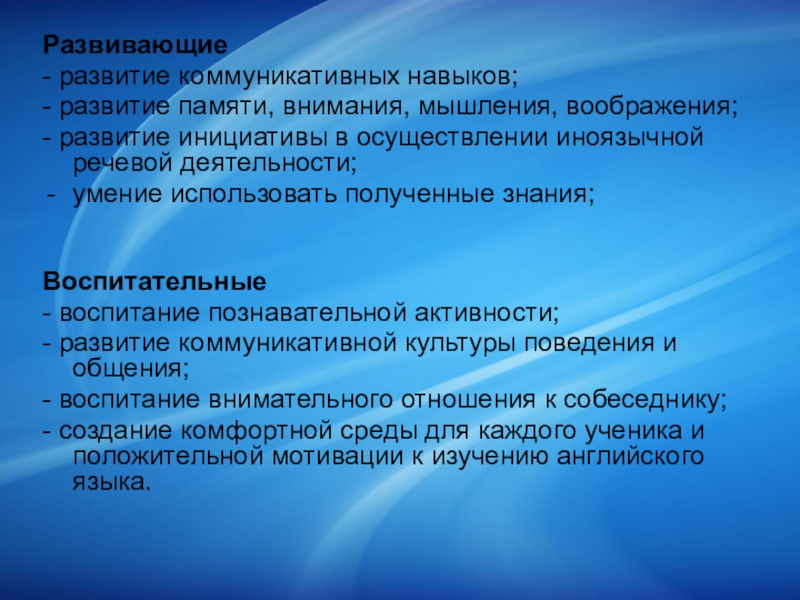 - развитие коммуникативных навыков;
