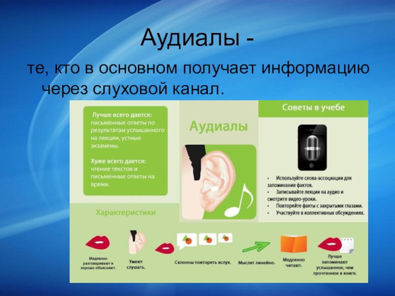 те, кто в основном получает информацию через слуховой канал.