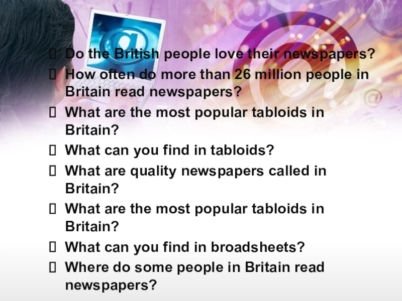 Popular newspapers (known as «tabloids») carry a lot of big photographs, contain short, simple reports on the main news, stories about famous people.