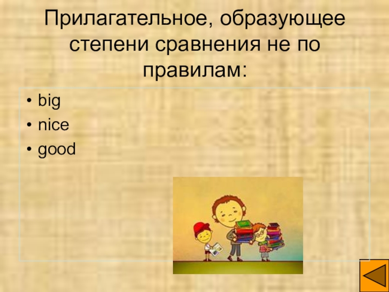 Прилагательное, образующее степени сравнения не по правилам:bignicegood