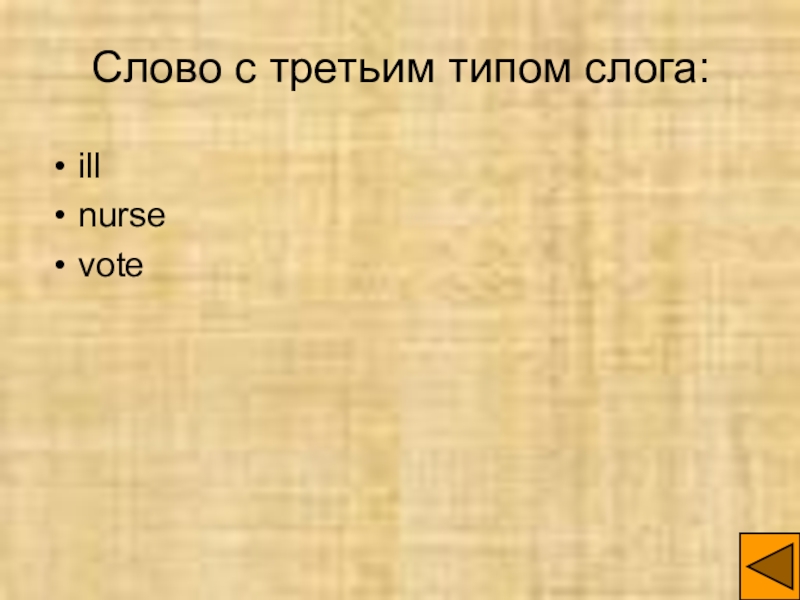 Слайд 14Слово с третьим типом слога: