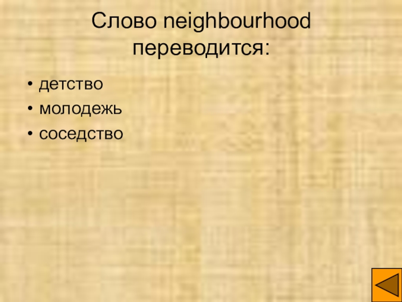 Слайд 8Слово neighbourhood переводится:
