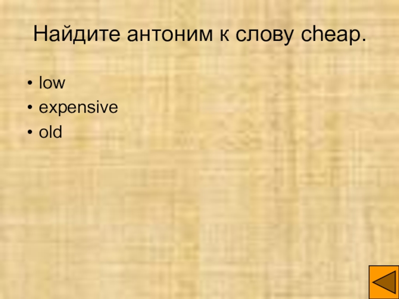Слайд 7Найдите антоним к слову cheap.