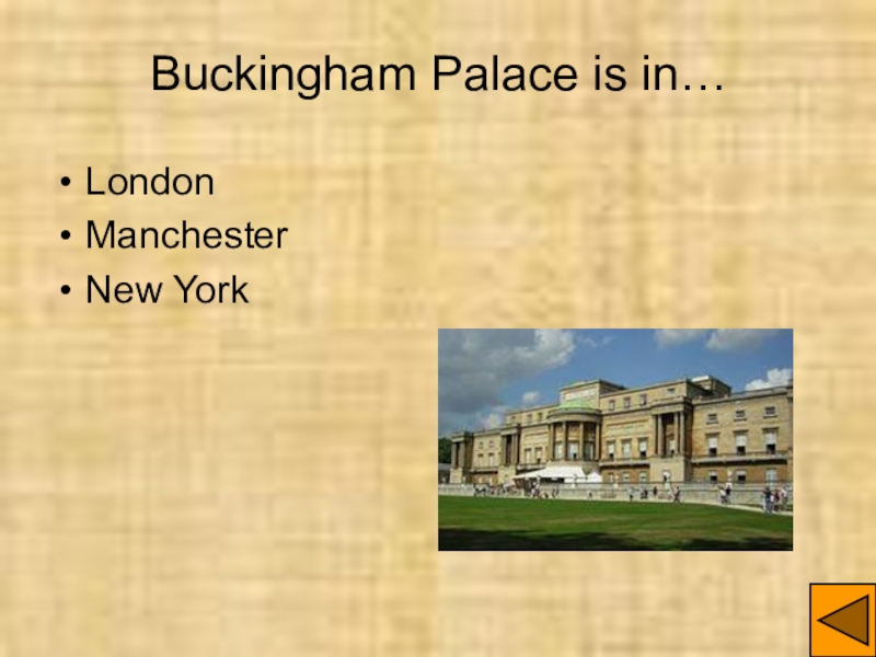 Слайд 18Buckingham Palace is in…