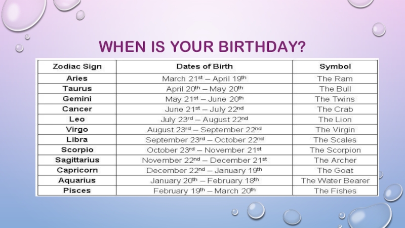 Презентация, доклад к уроку английского языка в 6 классе по теме What do the star signs say?