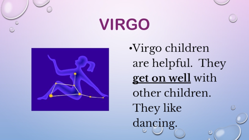 virgoVirgo children are helpful. They get on well with other children. They like dancing.