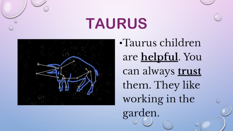 TaurusTaurus children are helpful. You can always trust them. They like working in the garden.