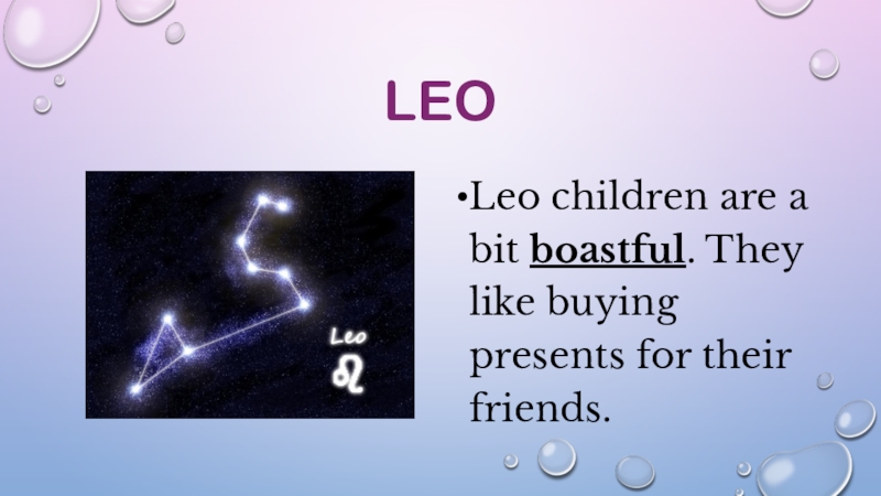 leoLeo children are a bit boastful. They like buying presents for their friends.