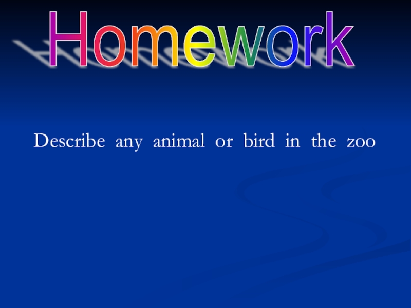 Homework  Describe any animal or bird in the zoo