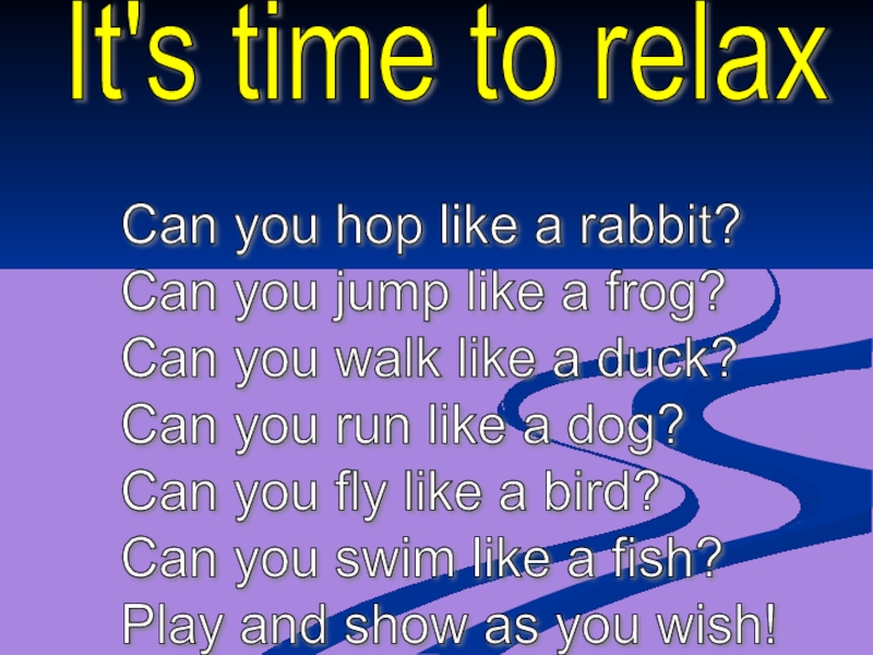 It's time to relaxCan you hop like a rabbit?  Can you jump like a frog?
