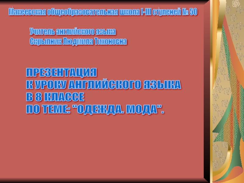 ПО ТЕМЕ: "ОДЕЖДА. МОДА".