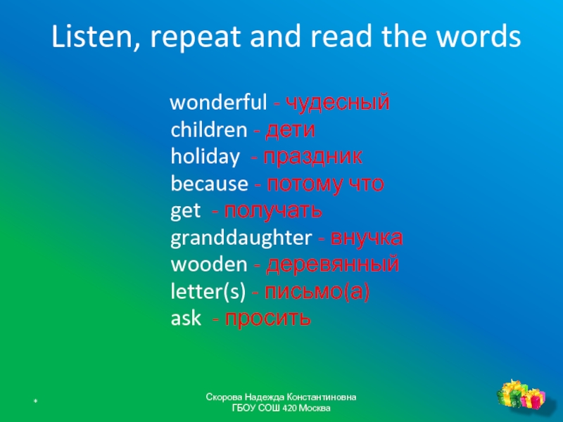 Скорова Надежда Константиновна ГБОУ СОШ 420 Москва